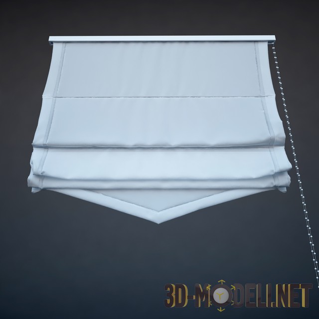 3D-модель классической римской шторы. Конструкция шторы была позаимствована у римских мореплавателей, и ее изготовление происходит по тому же принципу, по которому когда-то изготавливались паруса - это отрез ткани, который можно и поднимать, и опускать, что позволяет либо полностью пропускать солнечный свет в комнату, либо, наоборот - закрывать его.