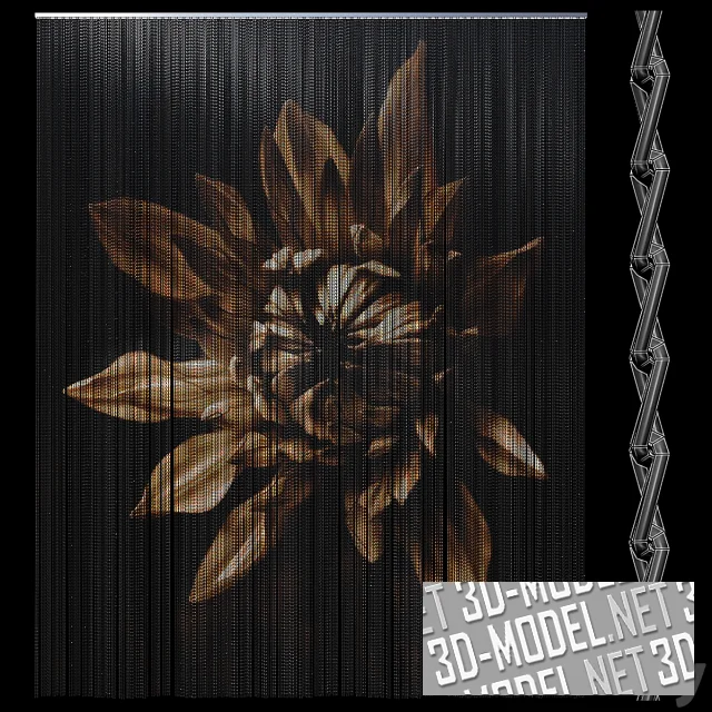 Современные шторы из цепей станут интересной интерьерной находкой. Это не обычные занавески, а произведение искусства! В представленных вариантах можно узнать голову Давида, иллюстрацию Felures от известной французской художницы Валери Фистароль (Valerie Fistarol), насладиться изысканной цветочной композицией.