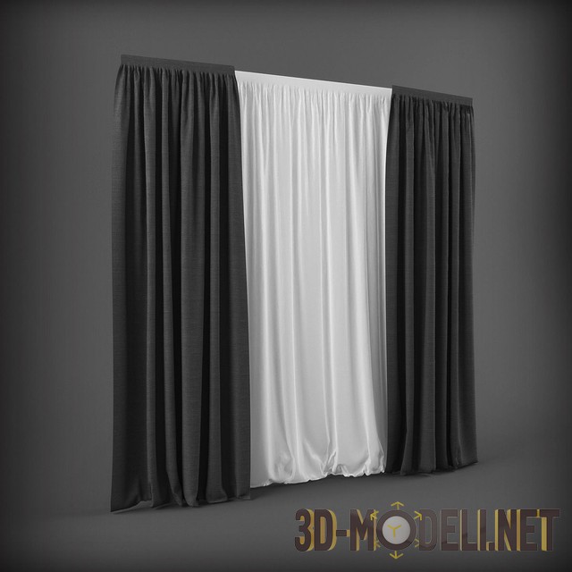 3D модель современных штор с тюлью. Отличный вариант для декорирования окна в любом современном интерьере. Архив содержит текстуры для любого цветового решения: и бежевую, и темно-серую ткань. Сохранены в форматах 3ds Max 2010, fbx, obj.