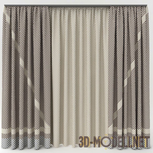 Портьеры с диагональными вставками и тюль
