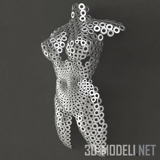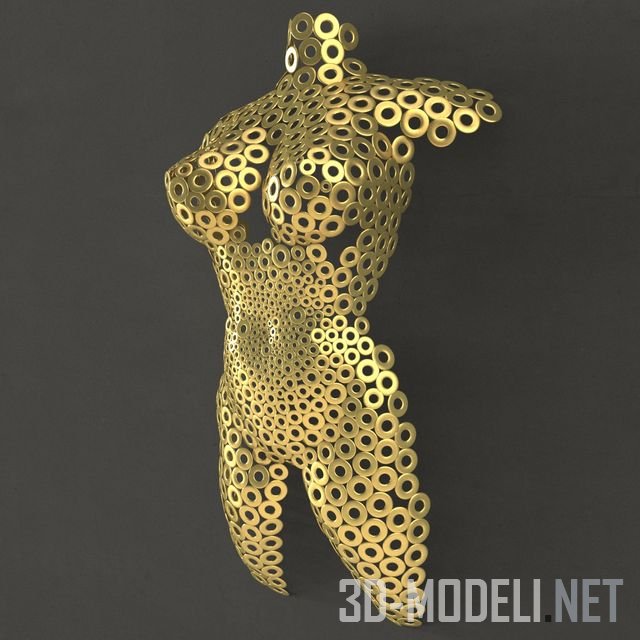 Holly Lentz), выполнена в виде фрагмента женского тела. Поверхность скульптуры собрана из разного размера плоских металлических колец. Представлено два варианта – из колец золотистого и серебристого цветов.