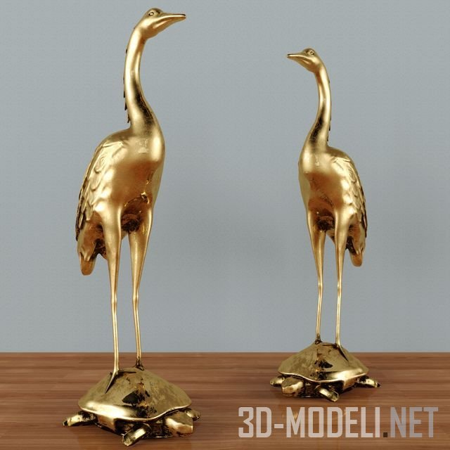 Китайская статуэтка из золотистого металла в рустикальной технике. Журавль, стоящий на небольшой черепахе. Рустикальная фигурка украсит интерьер в этно-стиле.