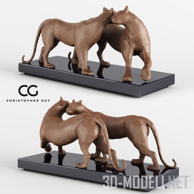 Интерьерные предметы от бренда Christopher Guy всегда будут элегантным дополнением к интерьеру. Не станет исключением и эта скульптура Force Tendre 46-0313, изображающая двух леопардов. Статуэтка на мраморной основе, выполнена из металла. Размер скульптуры: 77 х 25 х 33 см.