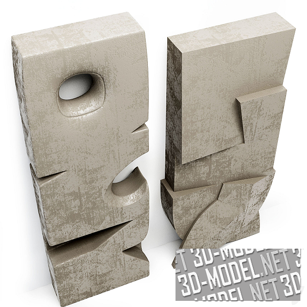 Вариант современного искусства, два барельефа в минималистском стиле. Скульптуры носят абстрактный характер и отличаются по размеру.