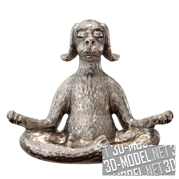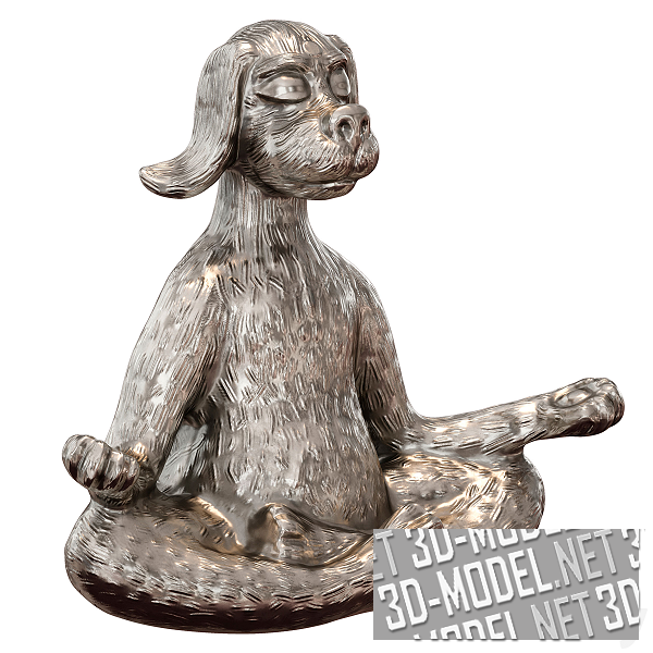 Серебряная и бронзовая фигурка собаки, занимающейся йогой. Забавный зверь сидит в позе «Лотоса», с закрытыми глазами, медитирует. Габарит фигурки: 20х10х18см.