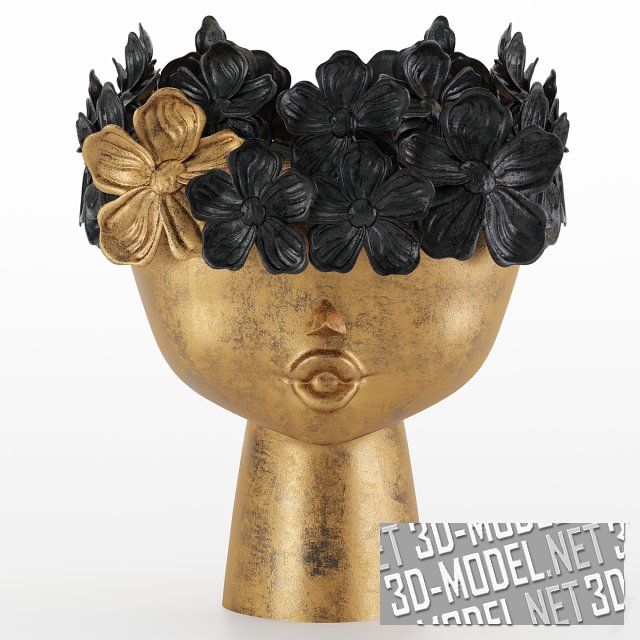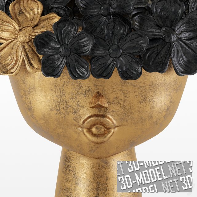 Декоративная интерьерная композиция из двух статуэток в виде стилизованых голов женщины и девочки с цветами вместо волос. Статуэтки отделаны двумя видами отделки - рустикальным черным и золотистой паталью. При этом комбинация отделки разная. У женщины шея, голова и цветы (кроме одного, крупного по центру) - черные, центральный цветок - золотистый. У девочки шея, голова и один цветок золотистые, а остальные цветы на голове черного цвета.