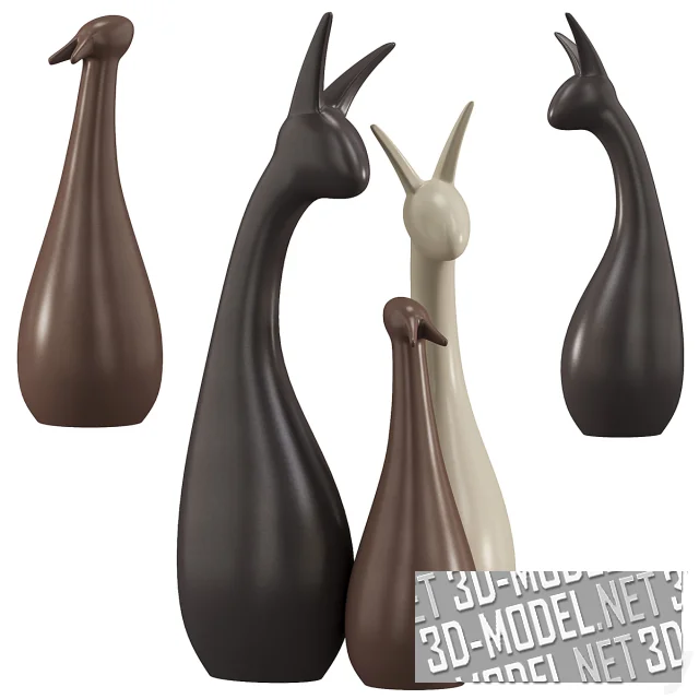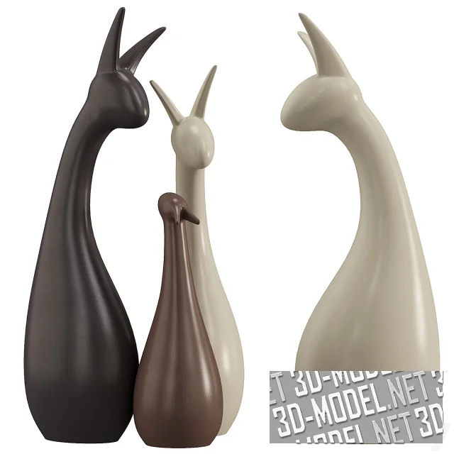 Интерьерные керамические фигурки в скандинавском стиле Giffal Decorative. Стилизованные кеглевидные зверьки с длинными ушками (мама, папа и детеныш) выполнены в черном матовом, слоновой кости и шоколадно-коричневом цветах. Фигурки хорошо смотрятся в группе и сольно.