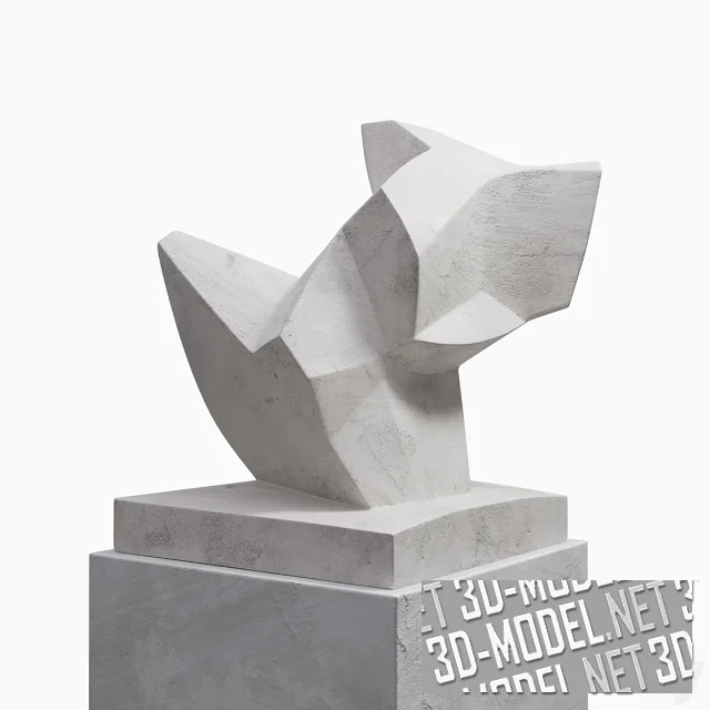 Оригинальная работа выполнена из гипса. Размеры скульптуры составляют примерно 35 x 38 x 40 см. В комплекте с ней поставляется высокий постамент из шлифованного камня или бетона. Его габариты: 27 x 33 x 120 см.