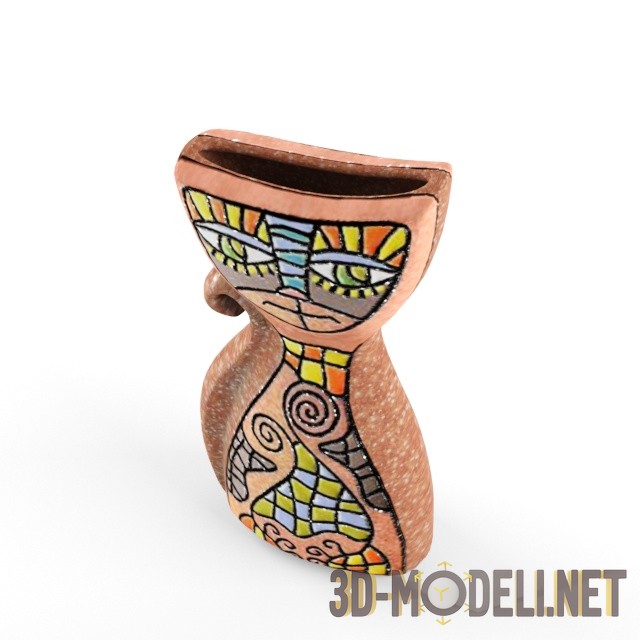Керамическая ваза для цветов, сделана из глины, покрыта глазурью и эмалью, обожжена при 1200 °С. Ваза изготовлена в форме кота и украшена соответствующим рисунком, и послужит жизнерадостным и игривым аксессуаров для декора интерьера.