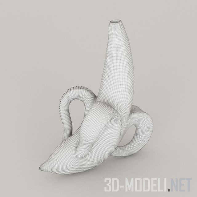 Довольно оригинальный предмет интерьера, который может украсить собой туалетный столик в дамской спальне или любую другую поверхность в подходящем интерьере. Это небольшая вазочка золотого цвета, отливающего теплым блеском. Ваза выполнена в форме полуочищенного банана.