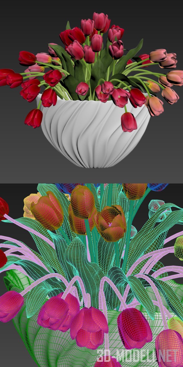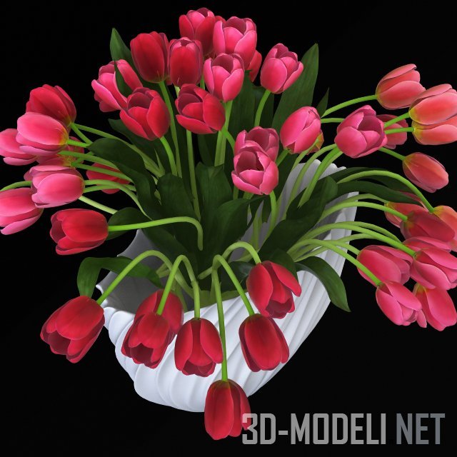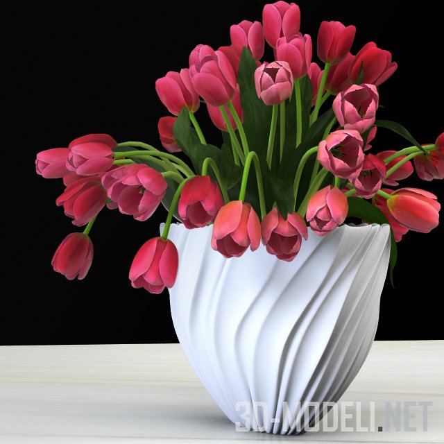 Придать любому пространству ощущение праздника поможет эта качественная и реалистичная 3d модель букета тюльпанов. Яркий цвет и количество цветов отлично гармонирует с белой рифленой вазой.
