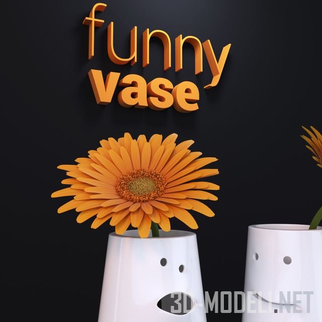 Три небольшие вазочки с забавным дизайном, который формируют улыбающиеся мордашки ваз. Прикольное впечатление усиливают оранжевые цветы гербер.