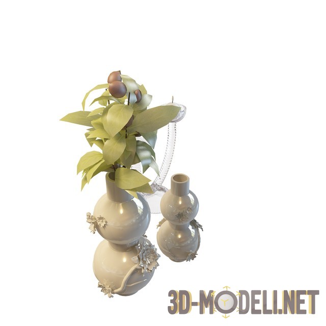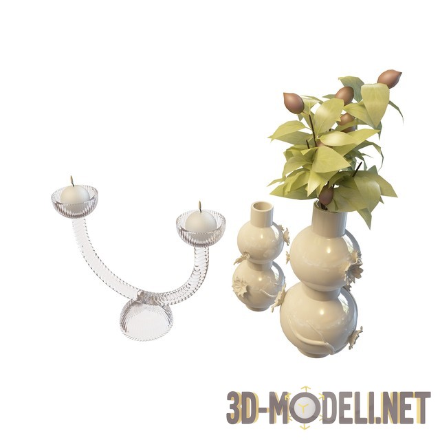 3d модель декоративного набора: две вазы и подсвечник. Изящные аксессуары нежных оттенков, создадут прекрасную декоративную композицию в любом пространстве.