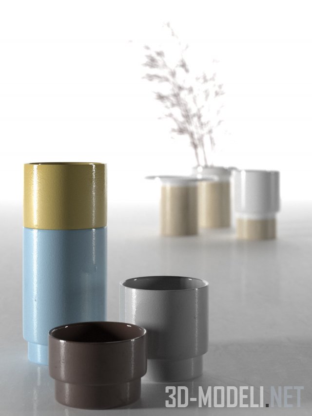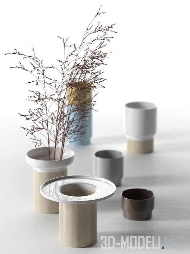 Набор стильных ваз в характерном Скандинавском стиле. Одна из ваз с ветками. Комплект станет реалистичным украшением интерьера.