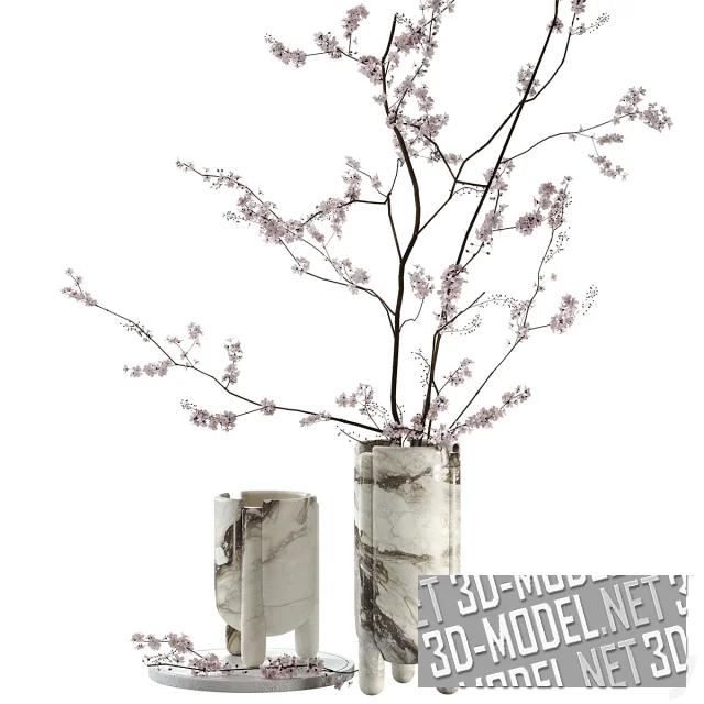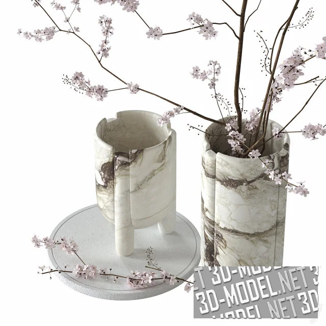 Цветущие ветки и мраморные вазы HAN от LUCA ERBA