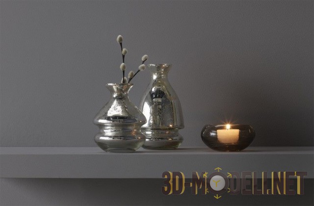 3d модель ваз «Bud» и «Little Bud» от Kelly Hoppen. Вазы привлекают внимание античной серебряной отделкой и элегантными формами, напоминающими восхитительный бутон. Одна больше, другая меньше, вазы являются воплощением домашнего декоративного украшения, и не только добавят в интерьер праздничное очарование, но и станут идеальным подарком в большинстве случаев. Модель смотрится реалистично, дополнена веткой вербы и свечой, и очень украсит проект.