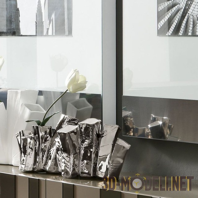 Интересная 3d-модель вазы «Skyline up» от производителя Adriani Rossi, Италия. Ваза представляет собой очень оригинальный вариант для декорирования современного интерьера. Поверхность керамическая, глазурованная, глянцевая, может быть в отделке платина, золото, античное золото