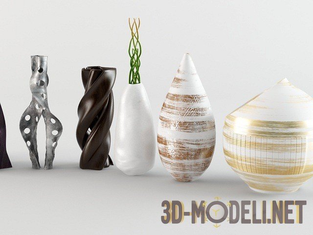 3D-модель набора дизайнерских ваз. Комплект на любой вкус – этих ваз вполне достаточно, чтобы создать интересную интерьерную композицию. Модель выполнена очень качественно и детально.