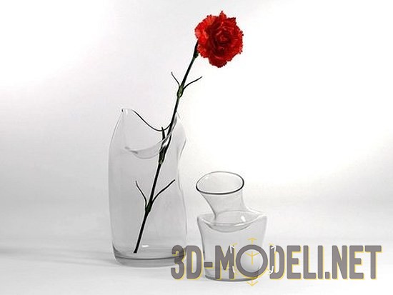 3D модель стеклянных ваз с гвоздикой. Этот милый декор украсит вашу интерьерную сцену. Модель имеет качественные шейдеры, материалы для трех типов рендера и текстуры в комплекте. В сцене детально проработанная модель цветка гвоздики.