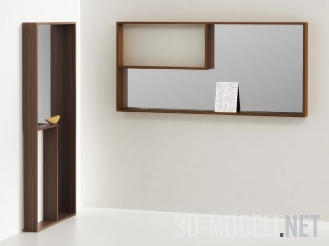 Современное зеркало от французского бренда Ligne Roset, модель «Loreta». Разработал дизайнер Goncalo Campos. Рама зеркала изготовлена из МДФ с использованием американского орехового шпона, что хорошо сочетается с серым зеркальным стеклом. Зеркало можно крепить к стене вертикально или горизонтально, в зависимости от интерьерных и пространственных пожеланий. Также модель «Loreta» снабжена двумя нескользящими клеевыми прокладками, что позволяет использовать зеркало в напольном варианте. Размеры зеркала (в дюймах): H: 70.75 х W: 33.5 х D: 5.