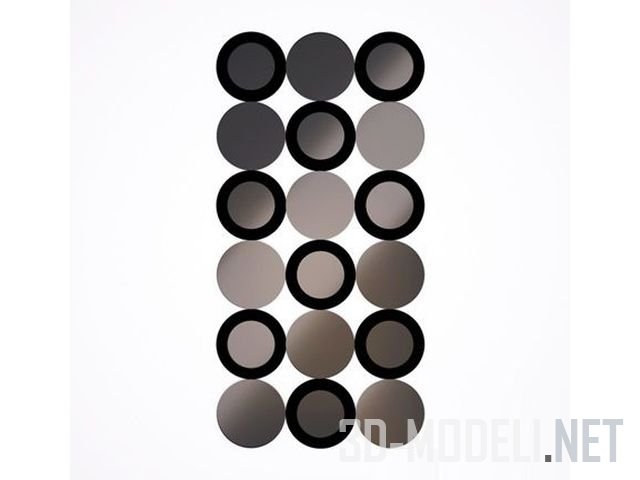 Несколько вариантов декоративных панно для украшения стен в интерьере, изготовленные из зеркальных кусочков. Представлены следующие варианты: прямоугольная панель, разделенная золотистой клеткой на мелкие квадраты с горизонтальной и вертикальной пескоструенной полоской. Второй и третий варианты: комбинации черных или золотистых кружочков с обычным зеркалом. Бренд: Christopher Guy. Зеркала: Christopher Guy in 2014 50-2888-A-BEV 20th C. Gold, Christopher Guy in 2014 50-2984-A-BEV, Christopher Guy in 2014 50-2888-A-BEV Black Lacquer.