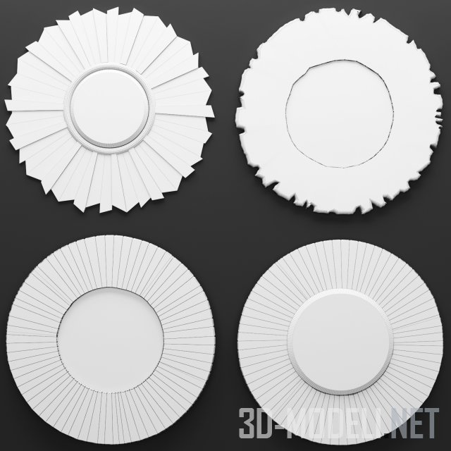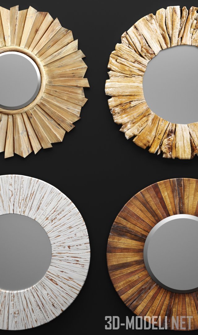 Набор зеркал в круглых рамах (4 шт.). В комплекте зеркало Kendra Mirror от Ren-Wil (D-1000 mm), зеркало Drift Wood от Evergreen Enterprises, Inc (D-700 mm), зеркало 3 IMAX Sadie White Wooden (D-900 mm), и зеркало Hardy от Loon Peak (D-900 mm).