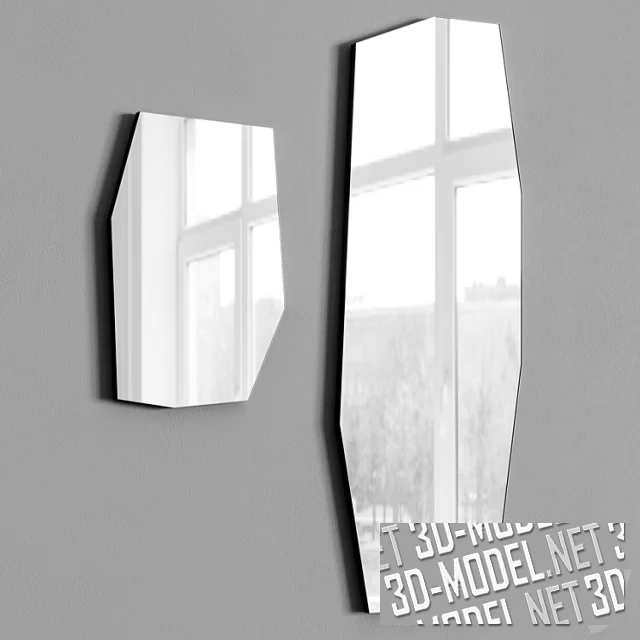 Современные настенные многогранные ассиметричные зеркала Shard от Ferm Living. Представлено два варианта: вертикальное большое восьмигранное (57,8х165х2,9см) и семигранное (50,5х76,4х2,9см).