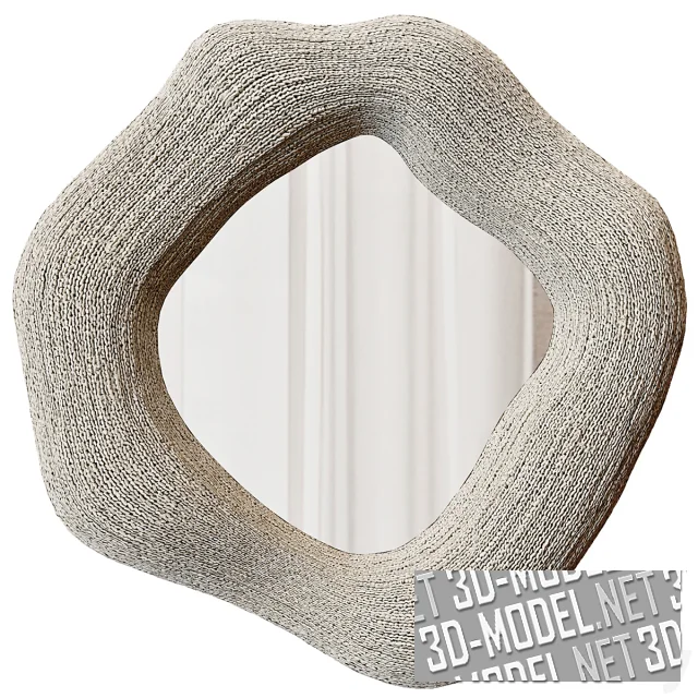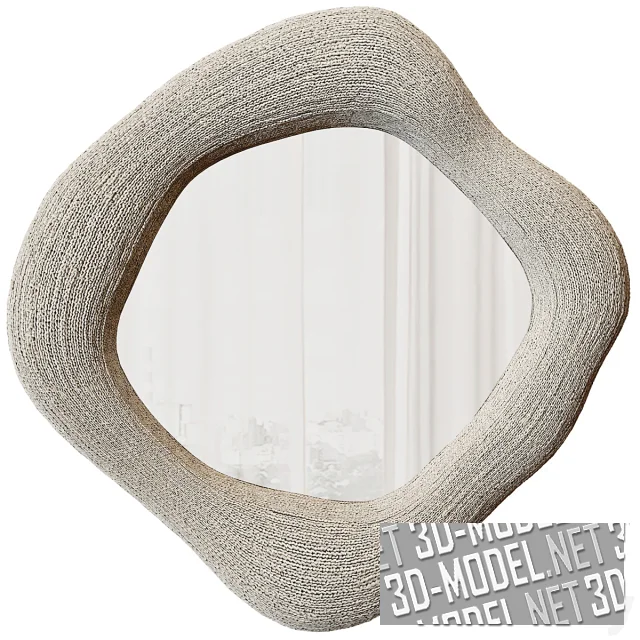 Криволинейное асимметричное зеркало JADEN (маленькое, среднее, большое) для современного интерьера. Рамы декорированы текстурой грубой вязки спицами из грязно-белой толстой пряжи.
