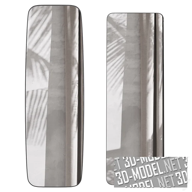 Полноростовые напольные зеркала-псише в черных металлических рамках - модели Iodus от LA REDOUTE INTERIEURS. Два зеркала со скругленными углами немного отличаются по форме (прямоугольной и с чуть выпирающими длинными гранями) и габаритам (Арт. 4097614 / GJP422 - 150х50х2см; Арт. 6355048 / GJP422 - 167х56х5,5см).