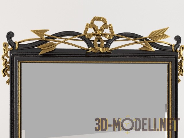 Зеркало в коричневой раме, со стрелами – бронзовая окантовка и бронзовый декор на верхней части рамы делает модель красивым и элегантным аксессуаром для классического интерьера.