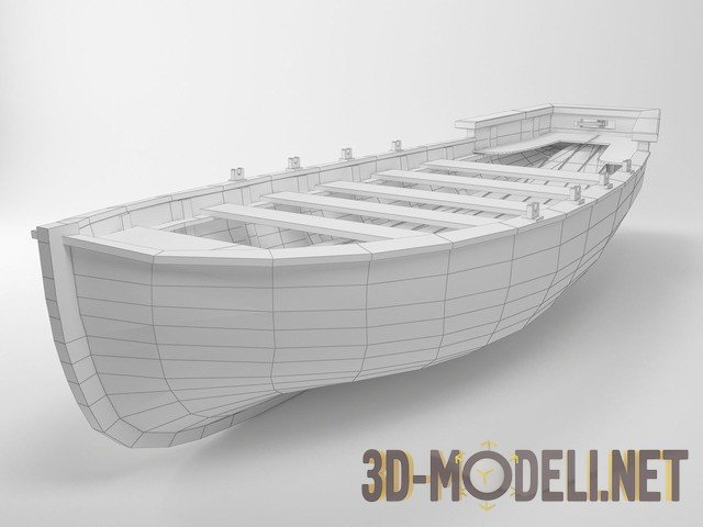 3D-модель обычной деревянной весельной лодки. Реальные пропорции, качественная сетка. Есть текстуры, материалы Vray.