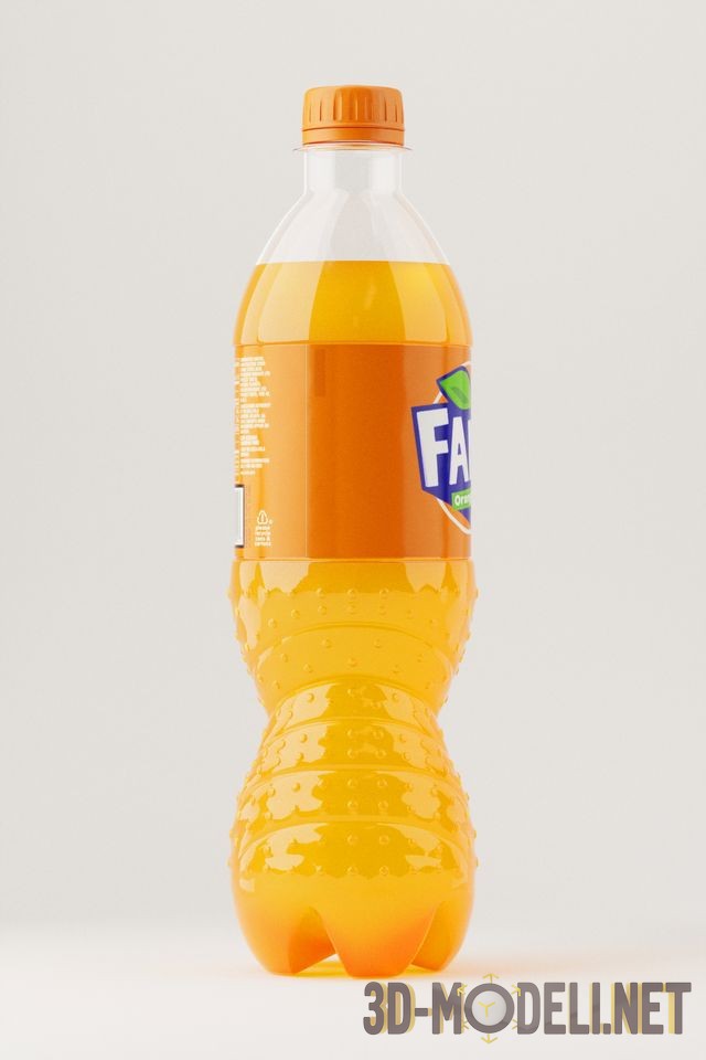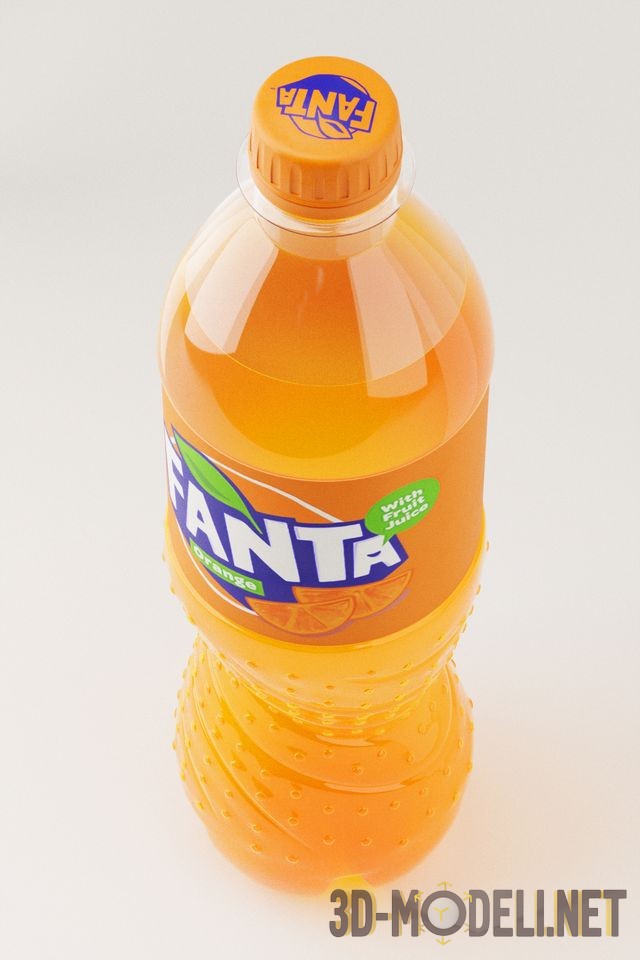 Новая бутылка Fanta с декоративно–закрученной нижней частью. Стандартная этикетка на боковой поверхности и оранжевая крышка комплектуют модель. Хорошо дополнит различные пространства.