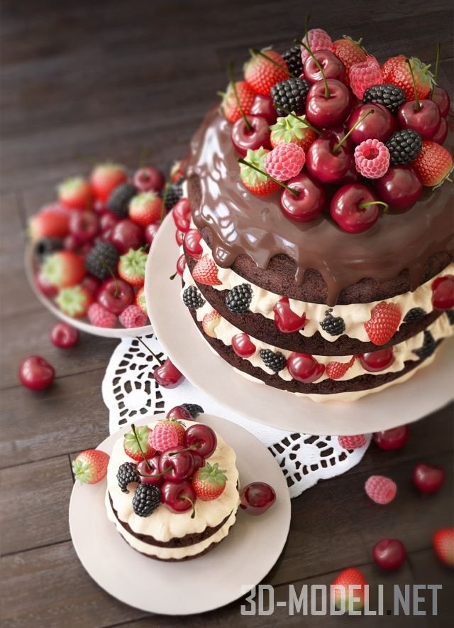 современный, торт, пирожное, ягоды, малина, вишня, клубника, ежевика, шоколад