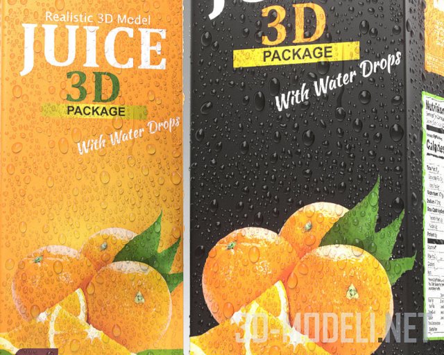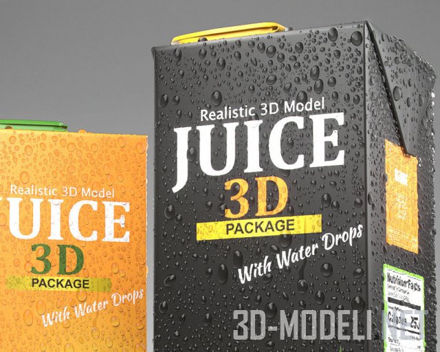 Реалистичная трехмерная модель упаковки для сока. Архив содержит все текстуры и файлы в формате 3ds max, fbx, obj. Материалы Vray и Corona.