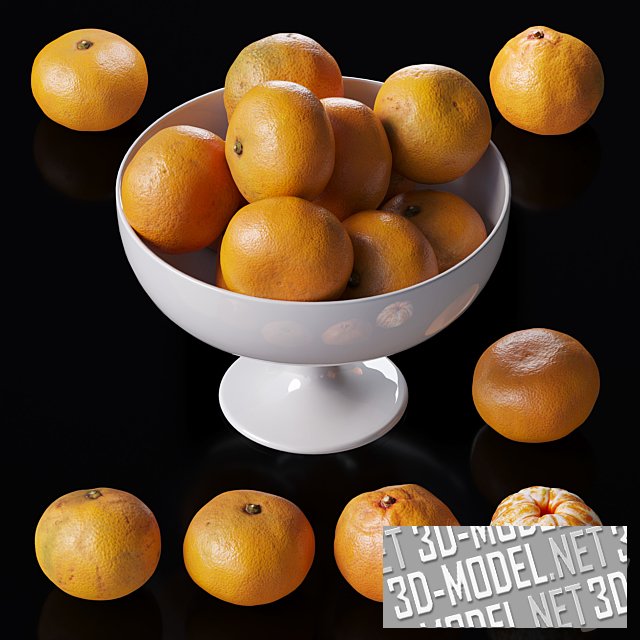 Современная ваза на ножке (приблизительный размер чаши 200 мм), наполненная яркими оранжевыми мандаринами. Один плод очищен от кожуры, если кому уже не терпится ощутить настоящий вкус новогодних праздников.