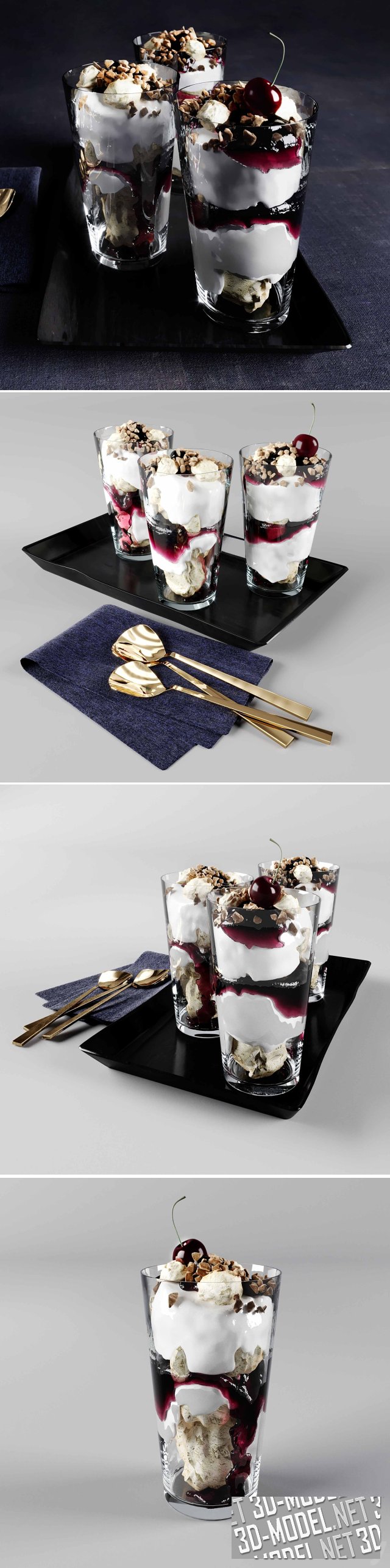 Устроить самые летний, свежий и сладкий "вишневый беспорядок" можно с помощью восхитительного десерта. В состав входят сливки, ваниль, вишни Морелло или другие, что делает десерт невероятно вкусным. 3d-модель выполнена очень реалистично. Черные поднос и золотистые столовые приборы очень гармонируют с основным акцентом - «Cherry mess». Текстуры в архиве.