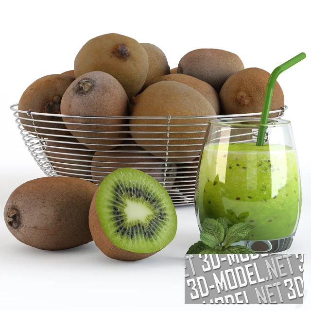 Прекрасный декоративный элемент для кухни или в качестве акцента на журнальном столике в гостиной. Плоды киви в вазе из черной металлической проволоки и стакан с соком фреш из киви.