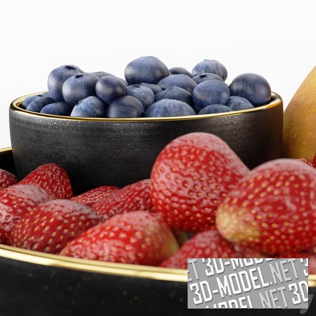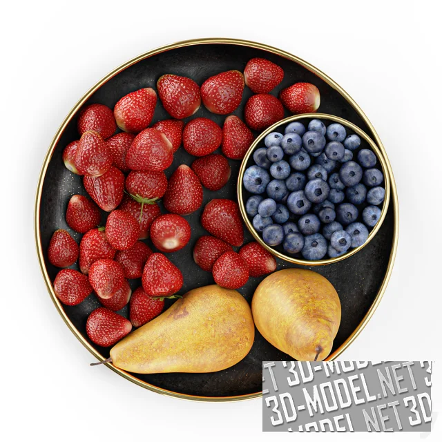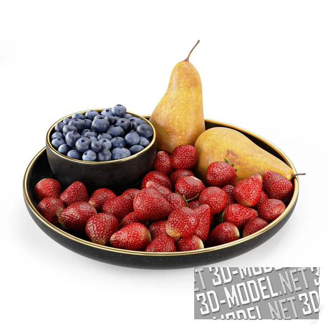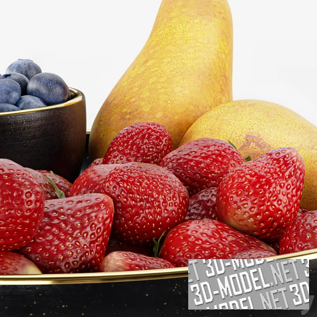 Блюдо с клубникой, голубикой и грушами