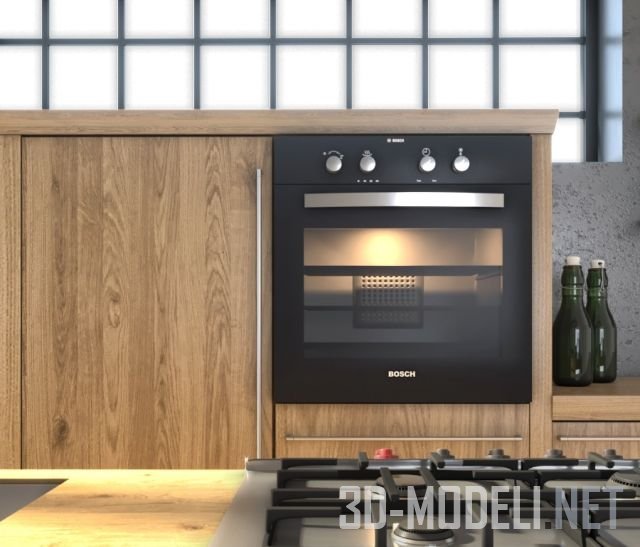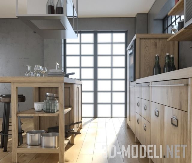 Современная кухня от Scavolini, выполнена в стиле лофт. В сцене присутствуют все элементы, кроме стен и окон.