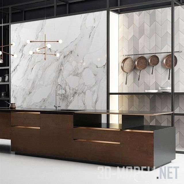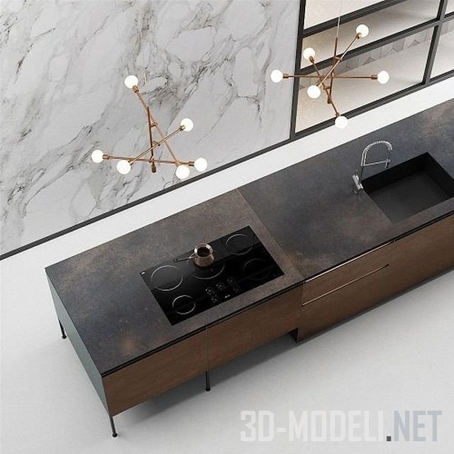Стильная и современная кухонная мебель Metaline 2018, дизайн разработан CSMA Architects для Italgraniti. Декор в сцену не входит. Текстуры для модели собраны в архиве.