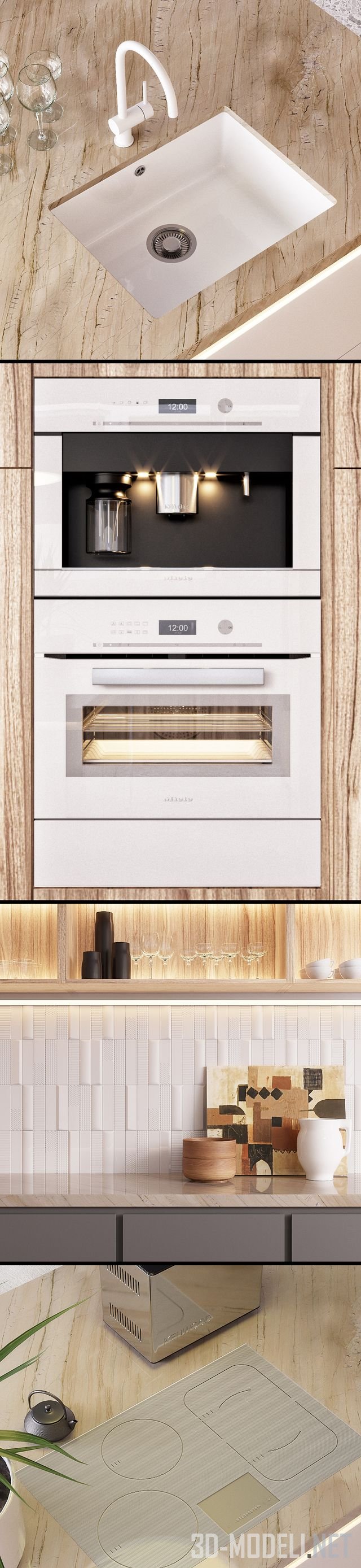Качественная 3d модель современной кухни Nature от Nolte, производства Германия. Мебель выполнена в современном элегантном стиле для помещения, объединенного с гостиной зоной. Фасады кухни изготовлены из шпона дуба светлого цвета, красиво сочетающего с белым глянцем других поверхностей. Эта модель островного типа, представлена с оборудованием и наполнением, содержит смеситель Newform, мойку Franke, варочную панель Miele, духовой шкаф и кофемашину Miele, хлебопечь Kenwood, стулья BossDesign Kruze, вытяжку Elica SEASHELL, а также весь декор.