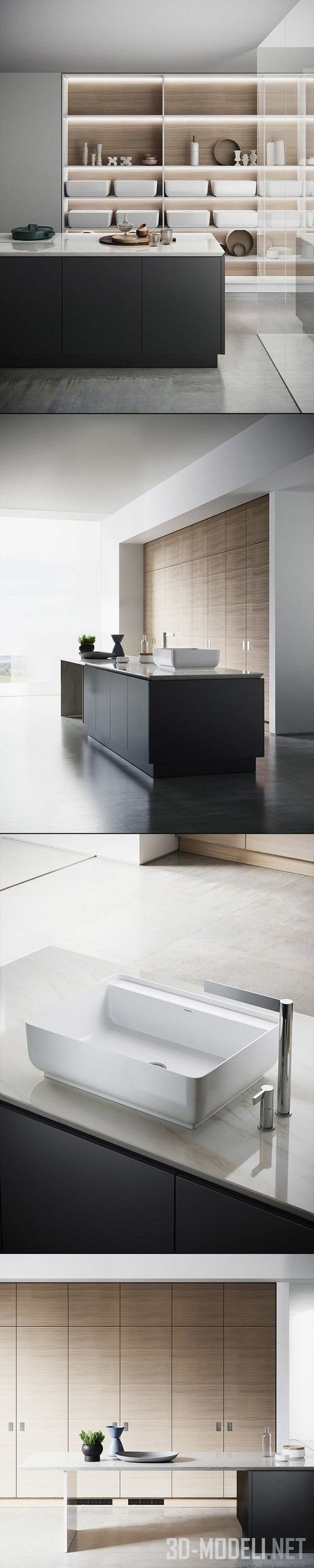 Стильная и современная кухня с универсальным дизайном, модель Qi от итальянского бренда Scavolini. Строгость минимализма разбавляют уместные предметы декора. Качественная 3d модель с текстурами.