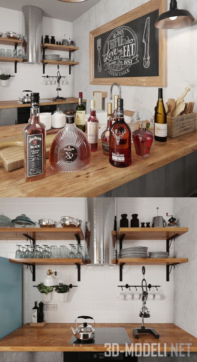 Стильная кухня для пространства в стиле Лофт 9б в Софии. В набор входит около 50 различных предметов интерьера. Некоторые модели имеют сглаживание NURMS. Архив содержит сцены Corona и Vray, материалы и файлы FBX и OBJ. Все текстуры имеют уникальные имена. Модель низкополигональная.