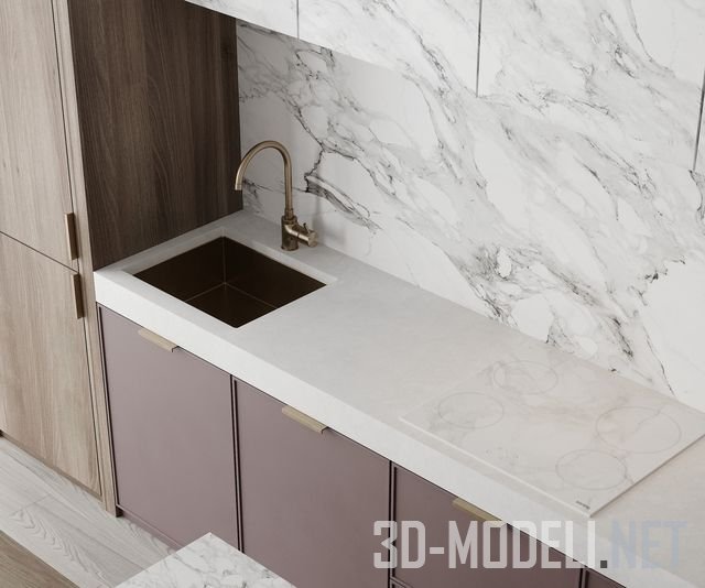 Кухня легко редактируется. Каждый модуль является отдельным объектом. В файл не входят потолок и стены.