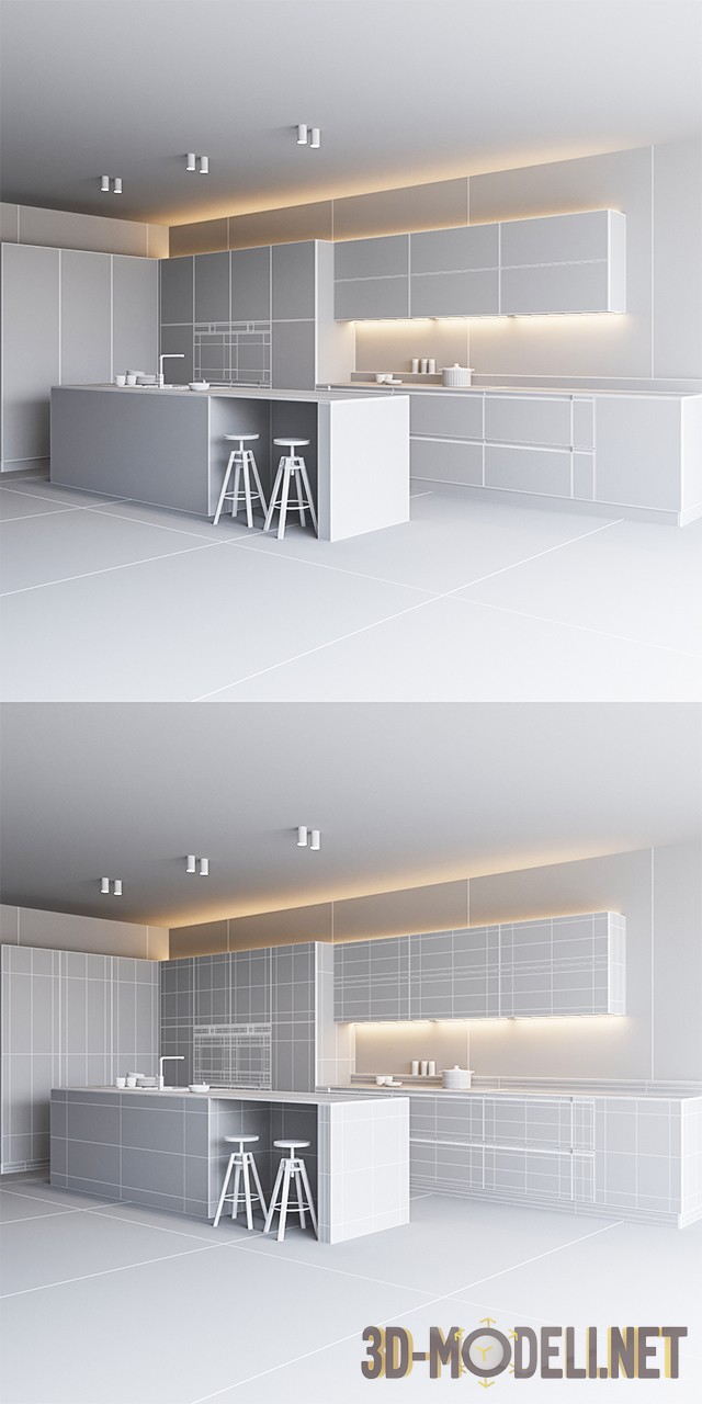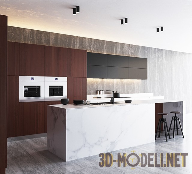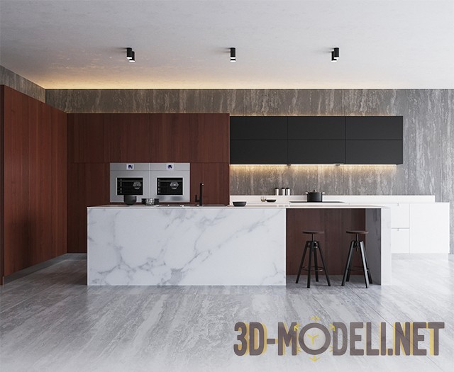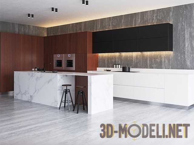 3D-модель современной кухни, с техникой Barazza в комплекте. В наборе присутствуют: