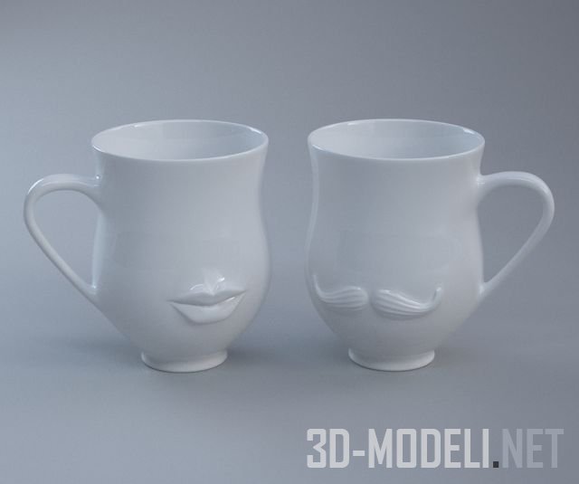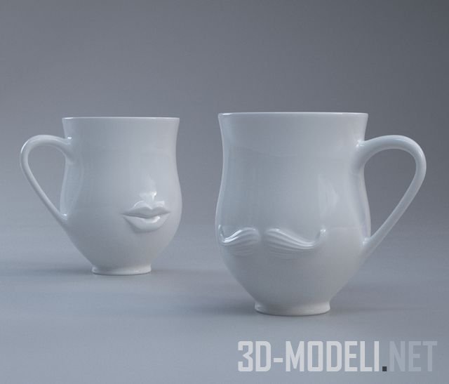 Забавные керамические кружки, белая и черная. На черной выпуклые белые женские губки, а на белой - мужские усы. Сделал их невероятно талантливый и настолько же оригинальный дизайнер интерьера Джонатан Адлер (