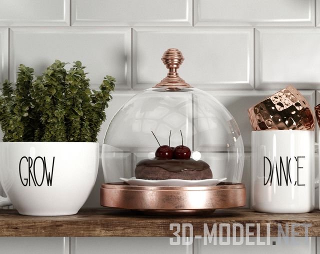 Отличного качества набор для кухни, бесшовная плитка «кабанчик» размером 200 х 100 мм и набор посуды от Magenta, дизайн Rae Dunn.