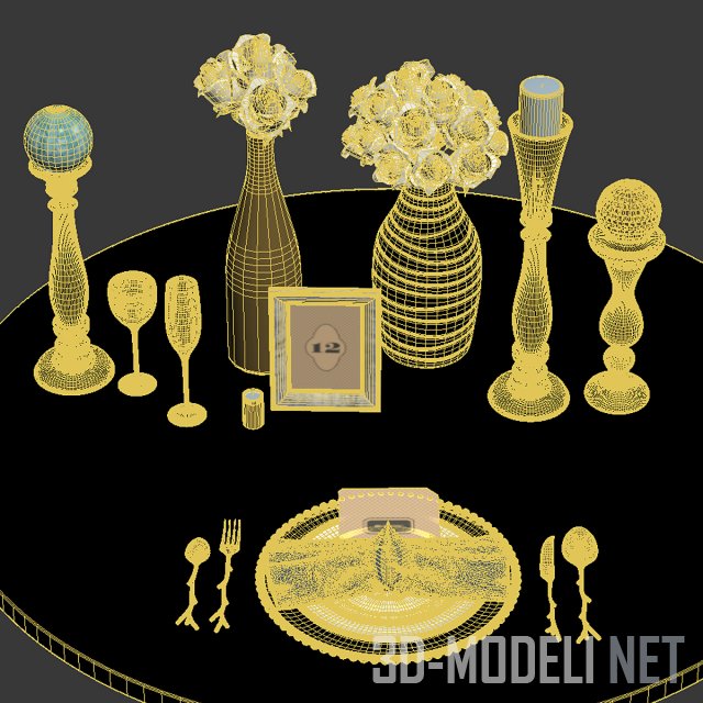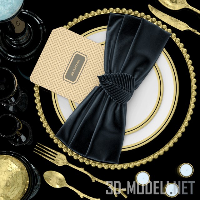 Элегантная сервировка для особенного дня, Style me Pretty The Vault. В дизайне приборов роскошь переплетается с природностью – черный глянец, золото и такие тонкие детали, как листья-держатели для салфеток ложки-вилки в виде веток отлично взаимодействуют между собой. Декоративные аксессуары и цветы гармонично подобраны и удачно дополняют сервировку.