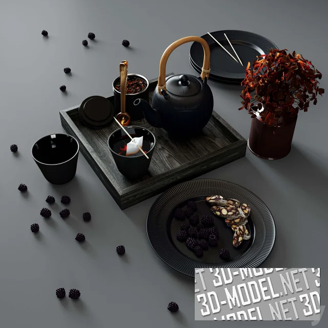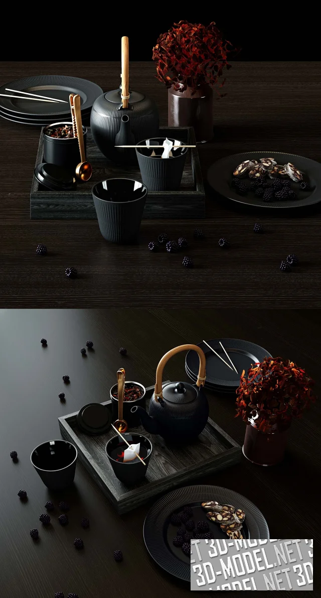 Набор посуды от Royal Copenhagen. В 2006 году компания представила серию Black Fluted Mega, вызвав большой интерес и признание. Это известная коллекция изысканного датского фарфора, которая является переосмыслением классического узора «Чёрный Флёр». Серия включает термочайник, термокружки, тарелки и чашки. Темный цвет отделки перекликается со скандинавским стилем. Набор подойдет для тематической сервировки стола и украшения дома.
