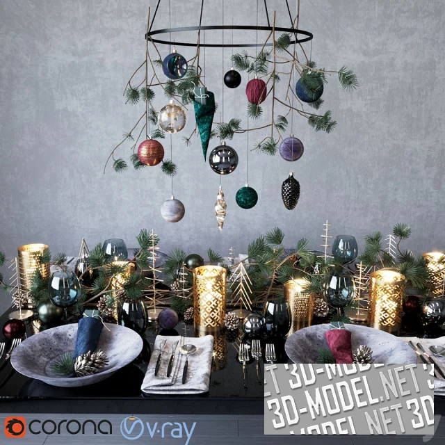Модель полностью оптимизирована для визуализаций в Corona и V-Ray, с корректно настроенными материалами стекла, металла, ткани и хвои. Она прекрасно подойдет для интерьерных рендеров, праздничных рекламных сцен, витрин и концептов в современном стиле.